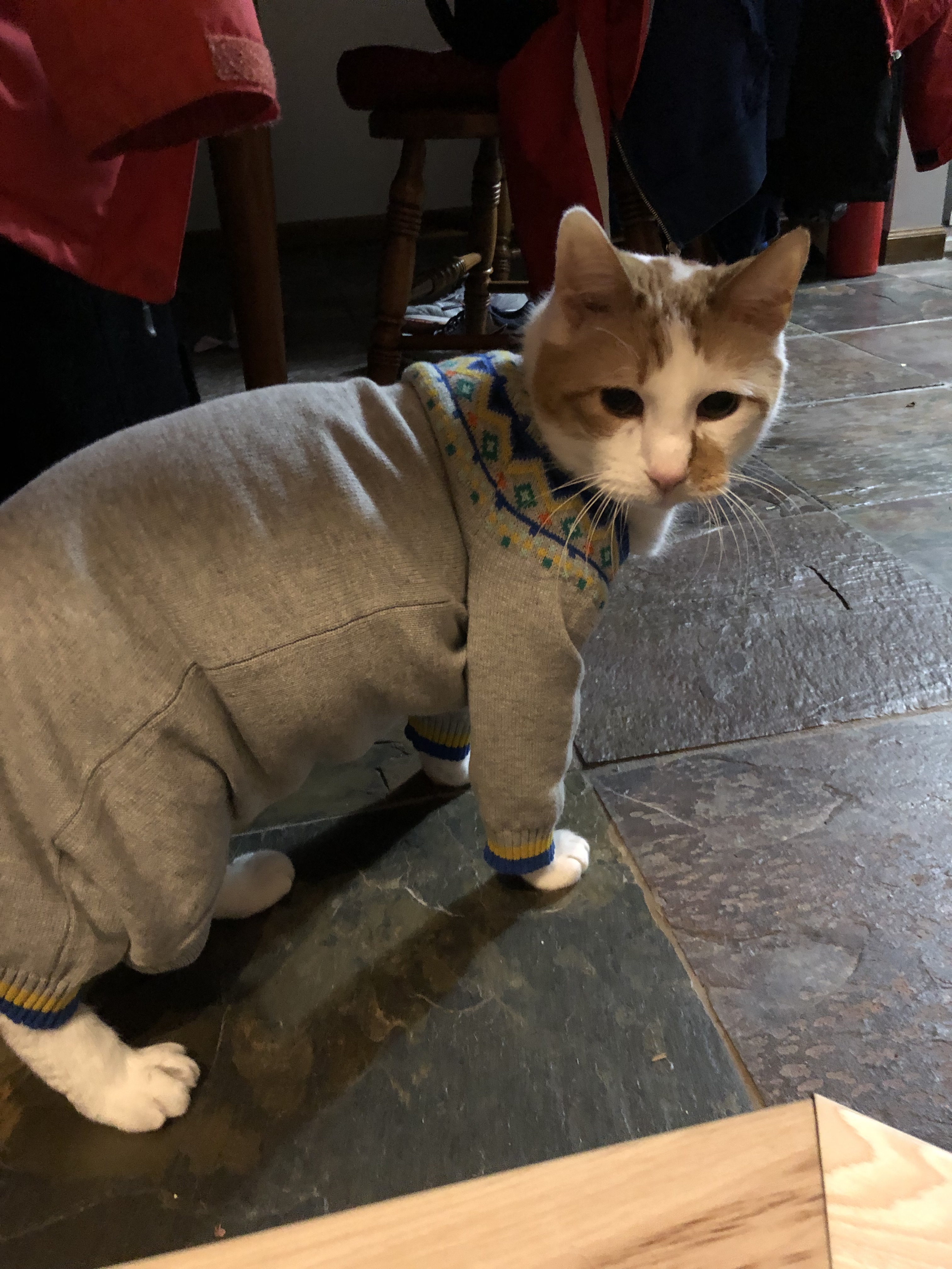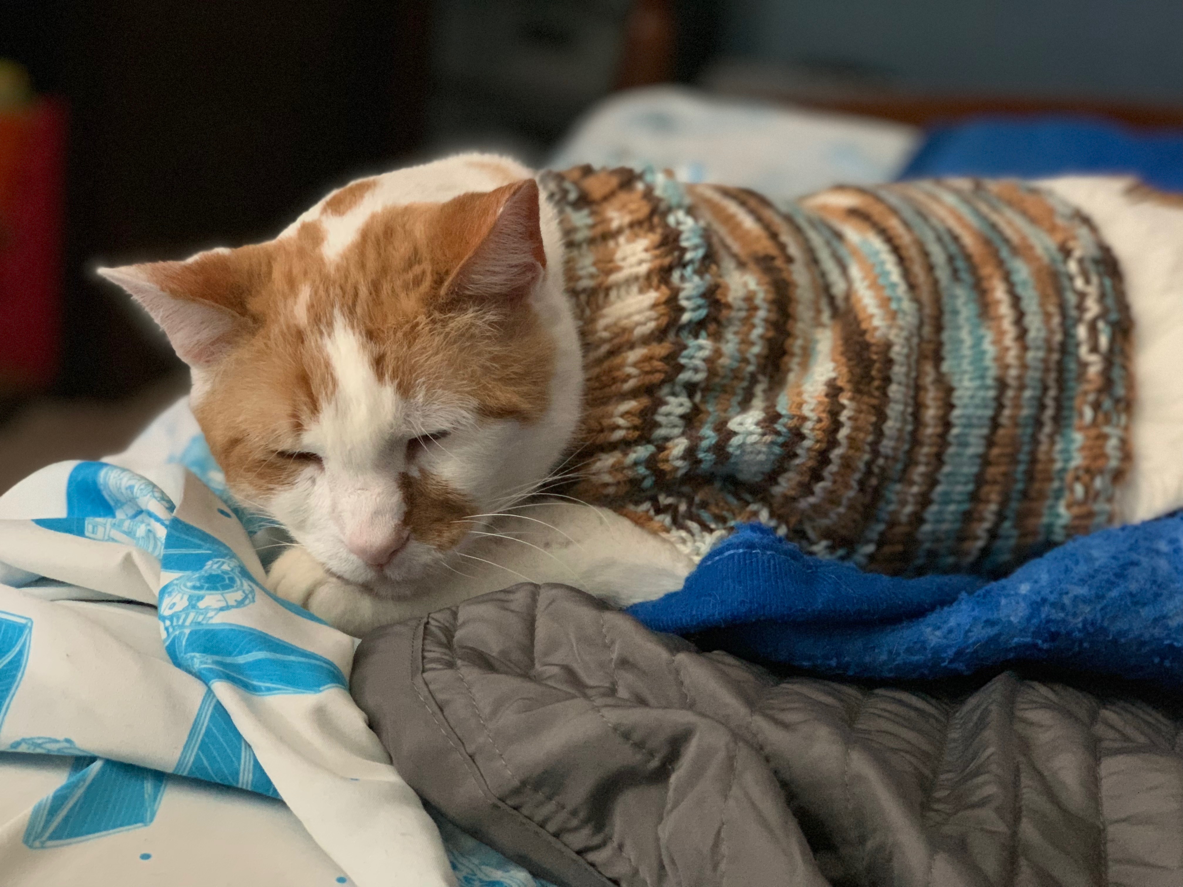 Love, love, love this story! The cat was adorable in the onesie, but the sweaters were perfect. So sweet and you’re a good kitty-mom.