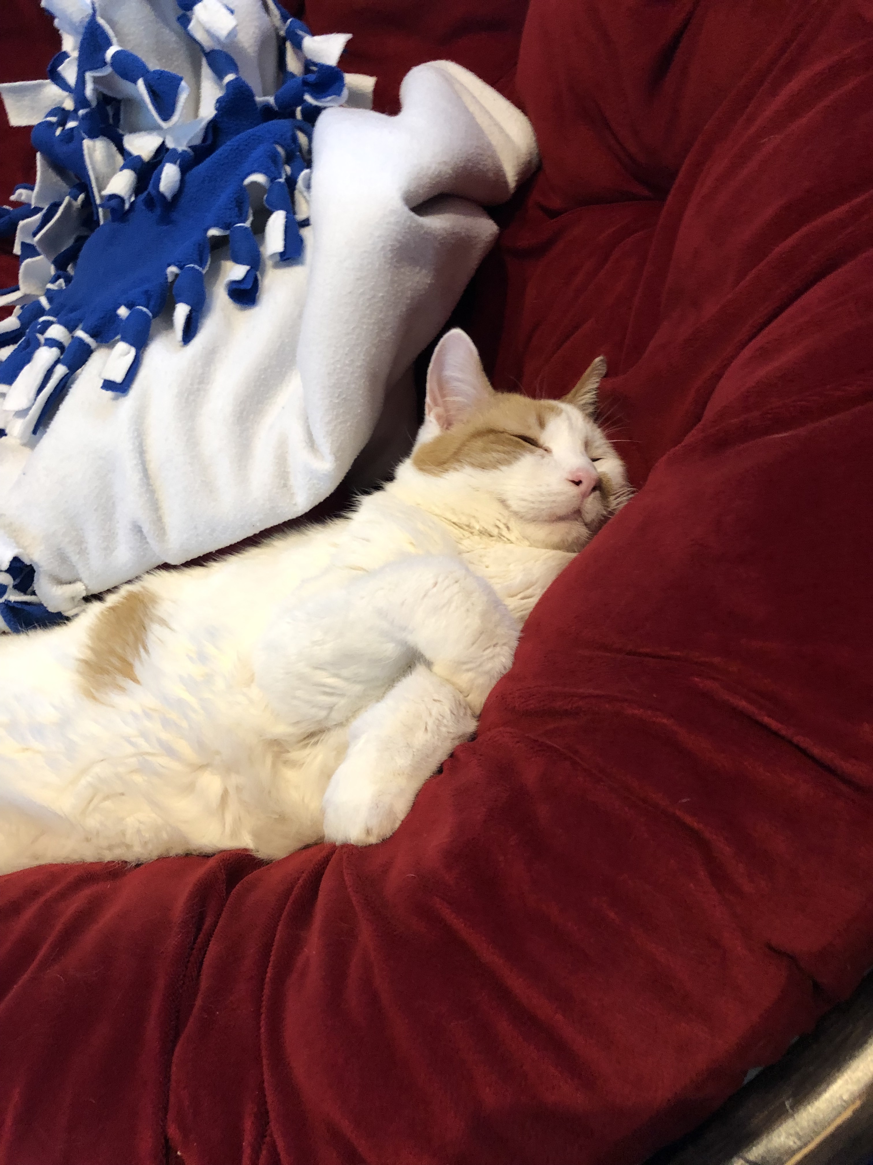 This old man is 17 years old, but you wouldn’t know it from meeting him. He is playful, loud, loving, loud, food-motivated, and did I mention loud? This buddy’s dating profile would say “likes laying on the couch, chasing hair ties, and trying to steal popcorn.”