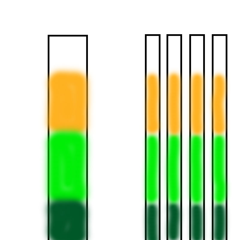 The first step is to split the top in half length-wise. Take note of which end is the “top” and “bottom.” We noted this with a loose knot on our tops. Set one of the halves aside. The other half was split further, halves, thirds, or quarters, depending on how long the color changes were in the roving. Mine were pretty distinctly 4″ to 8″, so I went with quarters.