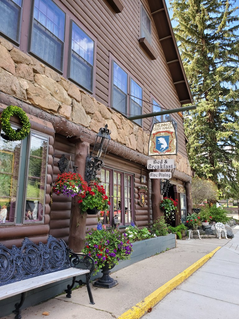 We ended up staying in Fort Collins with said family, as it’s really expensive to stay in Estes Park (and not buying a hotel rooms means more money to spend on yarn!). At the behest of my cousin Dan, we took a little detour on our way to Estes through Glen Haven. Off the side of the road is the Glen Haven General Store, that had the most amazing cinnamon rolls. Well worth the stop!