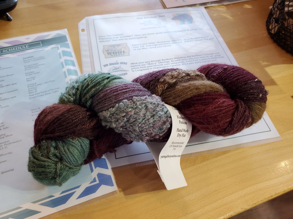 The yarns were mostly good ol’ LYS staples that I can get back home, but they did have a few local yarns available. Estes Park has its own fiber mill, and the shop carried some of their yarns. There was also a local dyer that had a couple of yarns in the shop, and one in particular caught my eye: