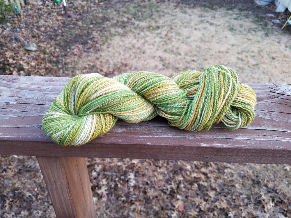 Earlier this year, my mom and I went to a spinning retreat in town, and one of the techniques covered was fractal spinning. The braid I received for the project was green, white, and orangey-gold, which made me think of the Irish flag.